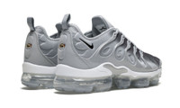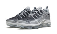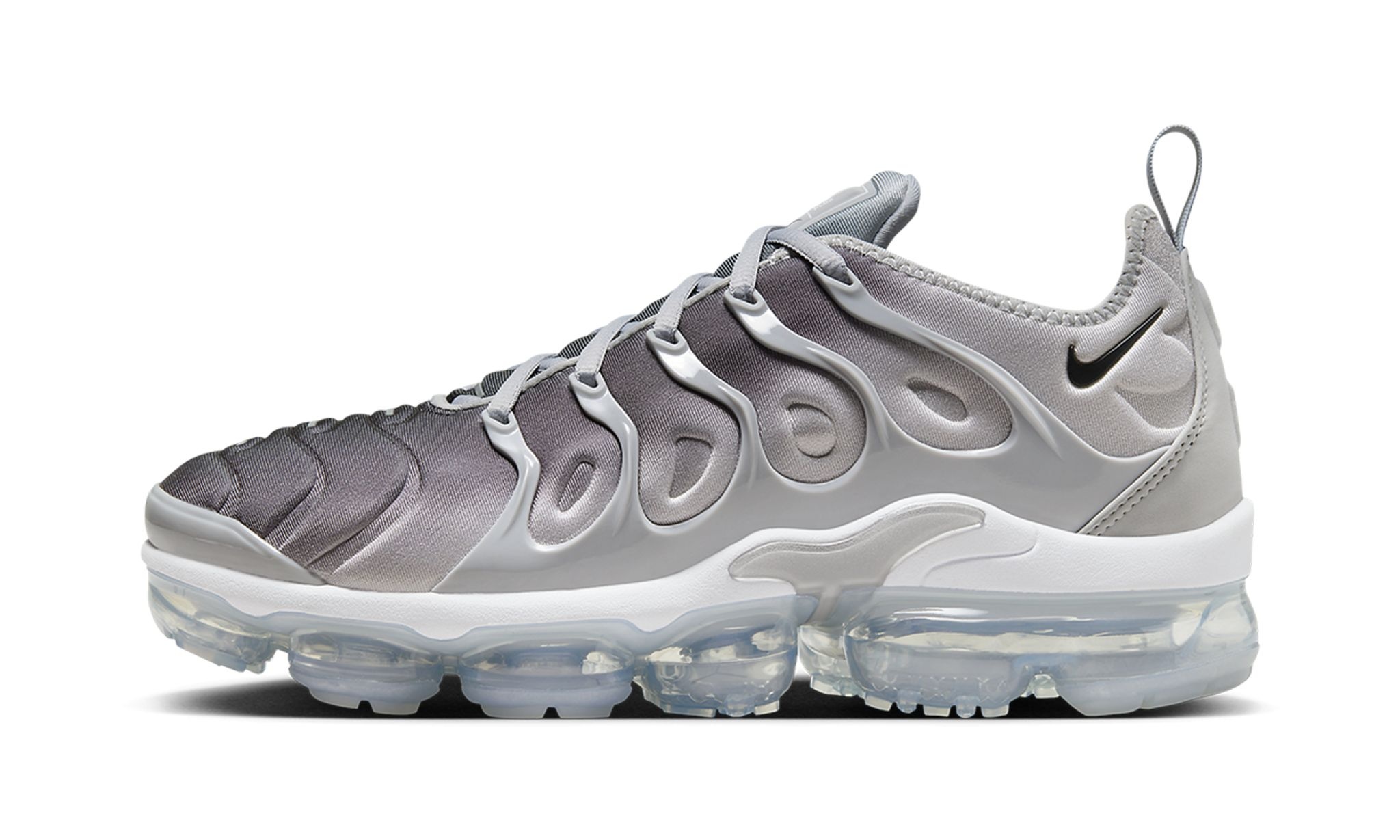 The Nike Air VaporMax Plus “Wolf Grey” features a dark-to-light grey gradient pattern across its neoprene upper. This updated version of the popular Nike Air Max Plus runner from the late ’90s sports callbacks to the original like wavy overlays, reflective hits on the heel and toe box, a mini Swoosh on the lateral side panel, and a yellow “Vm Air” logo on the heel to mimic the Tuned Air hit of the 1998 silhouette. The lightweight upper sits atop a white midsole and responsive VaporMax unit for all day comfort.