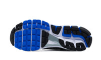 The Nike Air Zoom Vomero 5 SE SP amps up the comfort features with extremely breathable support. Durable synthetic leather and lightweight mesh combine with utilitarian overlays, while soft foam and Zoom Air cushioning deliver a smooth ride. The low-top sneaker offers a great color combination with mostly shades of white, black, and blue. Orange webbing trim weaves through the shoe's black laces. The rubber trim on the heel counter provides added support with its unique crisscross pattern in grey.