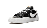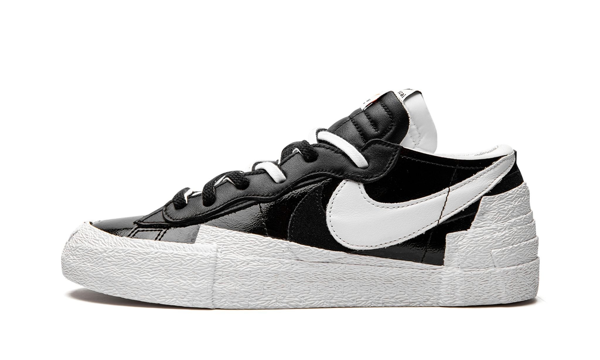 Sacai x Nike Blazer Low “Black Patent Leather” is a two-tone, black-and-white colorway of the vintage basketball and lifestyle shoe co-designed by Chitose Abe’s high fashion brand and Nike. From March 2022, the Blazer Low by Sacai and Nike in “Black Patent Leather” succeeds the duo’s other popular Blazer collaborations, including styles such as the “University Blue” and Kaws co-designed colorways. The shoe is equipped with a black patent leather construction with white contrast on the toe and forefoot. Layered white and black leather Swooshes are found on either side. Stacked black leather eyelet panels balance out the look of the dual white and black laces sitting on doubled black and white leather tongues. Four stacked white rubber panels extend from the midsole to appear on the lower portion of the heel. Release date: March 31, 2022