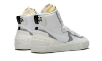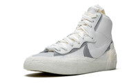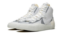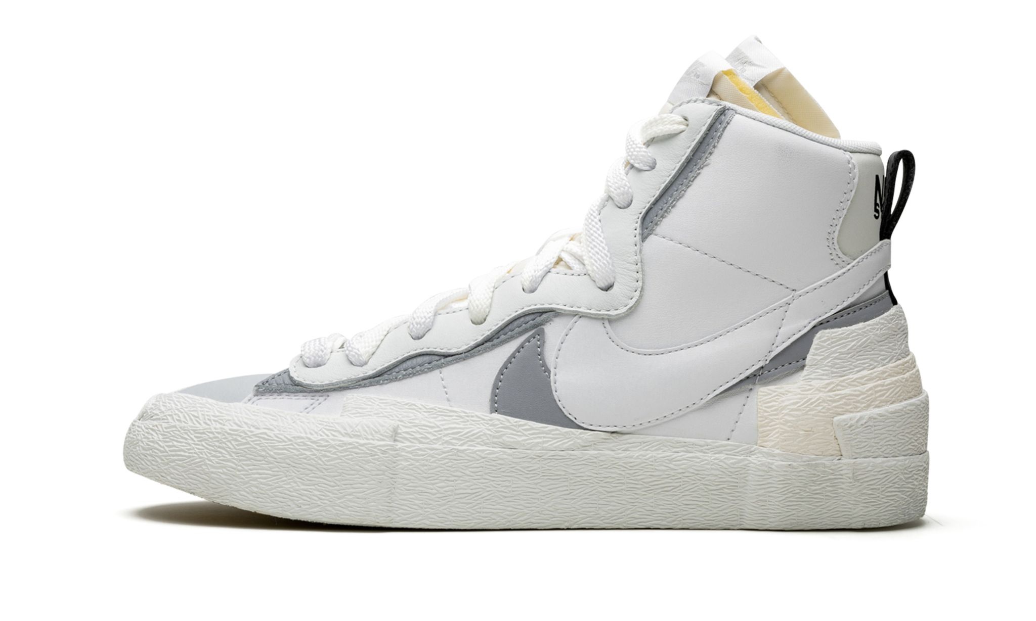 The sacai x Nike Blazer Mid “Grey” follows the immensely popular LDWaffle from the imaginative Japanese fashion label and applies the same eccentric vibes to the classic Blazer silhouette. Continuing with the theme of “two,” the iconic performance basketball turned lifestyle sneaker features two leather Swooshes, one white, one grey, on the mid-panel that are layered on top of one another. Dual laces, one pair white, the other black, sit on a double foam padded cream colored tongue with two white Nike branding designs on each tongue tab. A white leather covers the base of the sneaker with a light grey toe adding additional contrasting. Four stacking white rubber panels extend from the midsole to cover the lower portion of the heel with dual sacai and Nike branding appearing just above near the collar. The sole is constructed of sturdy white rubber and completes the look of this evolutionary design from sacai and Nike. Release date: October 10th, 2019.