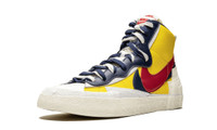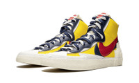 The Sacai x Nike Blazer Mid “Varsity Maize” is a unique edition of the classic model by the renowned fashion house. Similar to the hit LDV Waffle by Sacai that released earlier in 2019, this Sacai Blazer receives an avant-garde layered redesign. The premium leather construction features double Swooshes and double tongues, and layered eyestay panels. The midsole also has multiple layers of foxing that extend up the ankle area. This colorway features a Varsity Maize base with navy and red accents. Two sets of shoelaces are included to amplify the doubled-up effect. The limited edition Sacai x Nike Blazer Mid “Varsity Maize” released in spring 2019.