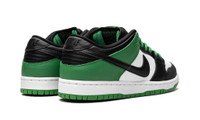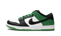 The Nike SB Dunk Low “Classic Green” is a colorway of the low-top skate shoe that draws design inspiration from the Boston Celtics. In addition to referencing the storied basketball team’s uniform colors, the “Classic Green’s” white, black, and green color block mimics the appearance of the Air Jordan 1’s original “Black Toe” colorway. Specifically, the white leather perforated toe and contrasting black leather toe cap and forefoot replicate the look of the “Black Toe.” As for the rest of the shoe, details include a black leather Swoosh, a Classic Green leather collar and heel, and green laces. Green “Nike SB” and Swoosh detailing can be found on the black nylon tongue tag. Tonal “Nike” branding is embroidered onto the heel. A two-tone, white rubber midsole and black outsole complete the clean look.