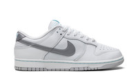 The Winter Storm Nike Dunk Low SE comes with a cracked leather upper in icy blue hues, with tumbled white leather overlays on the eyestay, heel, and forefoot.
