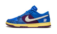 The Undefeated x Nike Dunk Low “Dunk vs. AF1” is a collaboration between the California-based sneaker boutique and Nike that pays homage to the two brands’ “Inside Out” Air Force 1 colorway from 2006. Part of Undefeated’s “Dunk vs. AF1” collection that also consists of an Air Force 1 cast in luxurious faux croc skin, the Dunk seen here features royal blue croc skin on the forefoot and eyelet overlays. Undefeated dresses both the leather perforated toe and suede heel in Signal Blue. A cream suede Swoosh is layered over the Night Purple canvas mid-panel on either side of the shoe. White “Nike” detailing is embroidered on the back of the shoe and Undefeated’s “Five Strikes” logo is stitched onto the lateral side of the heel. The Los Angeles-based boutique’s insignia graces the Signal Blue nylon tongue tag stitched onto the top of the blue leather tongue. The rubber midsole is painted yellow for a decidedly retro look that references the oxidation of midsoles of vintage shoes. Release date: Summer 2021.