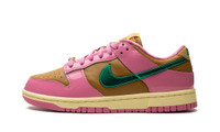 The Parris Goebel x Women’s Nike Dunk Low is a collaboration by the popular choreographer on a women’s-exclusive version of the retro basketball shoe. The Dunk Low by Parris Goebel features a colorful appearance with Bronzine-colored leather on the shoe’s base and shiny pink patent leather for the overlays. An emerald green leather Swoosh appears on either side of the shoe while a gilded Swoosh emblem is seen on the vamp. Upside down Swoosh branding is located on the tongue tag and on the heel. Underfoot, the shoe’s aged-looking midsole is matched with a pink rubber outsole. Release date: October 9, 2023
