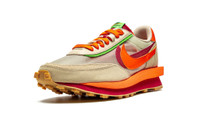 The Clot x Sacai x Nike LDWaffle “Net Orange Blaze” is a three-way collaboration between Edison Chen’s Clot streetwear brand, Chitose Abe’s high fashion line, and Nike on the hybrid shoe. A Fall 2021 release, the “Net Orange Blaze” marries Clot and Sacai for a take on the shoe that combines Nike’s LDV and Waffle Racer styles. The “Net Orange Blaze” colorway looks to Clot’s “Kiss of Death” Nike Air Max 1 for design inspiration, namely that shoe’s maroon, orange, and beige color scheme. The upper features a translucent base contrasted with beige suede overlays and layered Deep Red and Net Orange Blaze leather Swoosh logos. Two sets of beige and orange laces appear over the Deep Red and Net Orange Blaze nylon tongues. “Nike Sportswear” with an orange Swoosh appears on the green nylon tongue tag of the top layered tongue while Nike, Sacai, and Clot logos are found on the tongue tag of the underlaid tongue. Additional co-branding graces the heel. Underfoot, an orange elongated midsole with a gum outsole completes the look. Release date: September 14, 2021