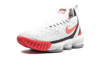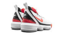 The Nike LeBron 16 “Hot Lava” is a colorway of LeBron James’s sixteenth signature performance basketball shoe inspired by the iconic Air Tech Challenge II tennis shoe. The recognizable color scheme and graphic details of Andre Agassi’s classic model are instantly apparent on this special edition of the LeBron 16. The upper features a clean white perforated knit base with contrasting fiery Hot Lava overlays, including the Swoosh and smooth black leather trim along the lateral panel and mid-panel. Further design aspects include a reinforced white leather trim around the heel with the heel plate donning the same motif as the Air Tech Challenge II. Embroidered white Nike Air branding is located on the heel with throwback Nike detailing on the tongue. Completing the look are visible Air pods on the outsole that receive and return energy through the foot with every step. The Nike LeBron 16 “Hot Lava” was released on May 24th, 2019.