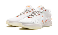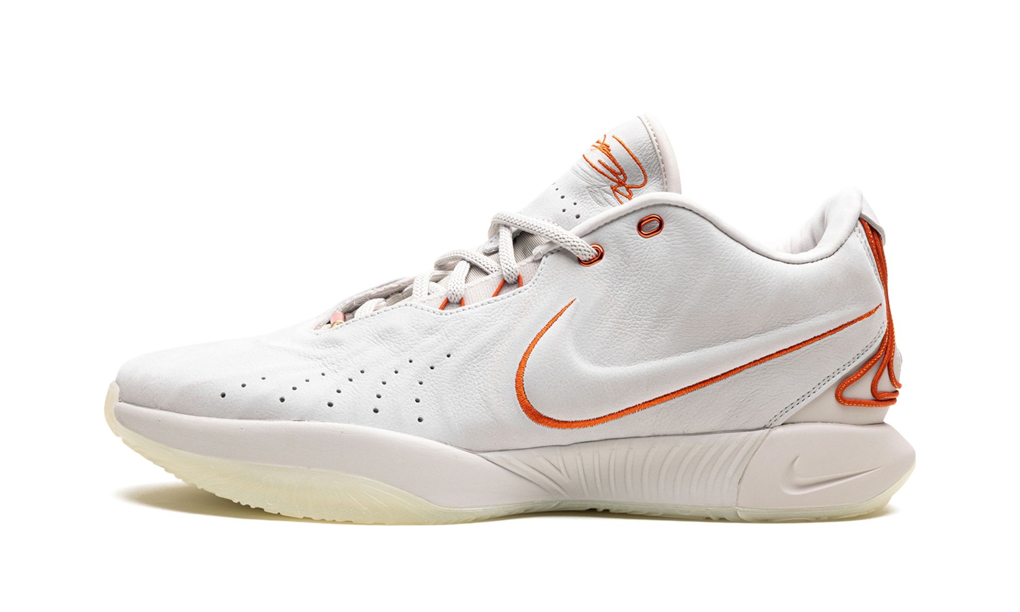 The Nike LeBron 21 "Akoya" is a colorway of LeBron James’s twenty-first signature shoe with a design inspired by the precious pearl. Also inspired by LeBron’s strong bond with his daughter, the “Akoya” Nike LeBron 21 is one of the most creative colorways in the Nike Basketball collection for the 2023-2024 NBA season. The upper is complete with a Light Bone-colored leather construction contrasted with fiery Campfire Orange accenting on the Swoosh, eyelet holes, and heel embroidery. LeBron’s signature branding is seen in orange on the tongue. Release date: September 28, 2023