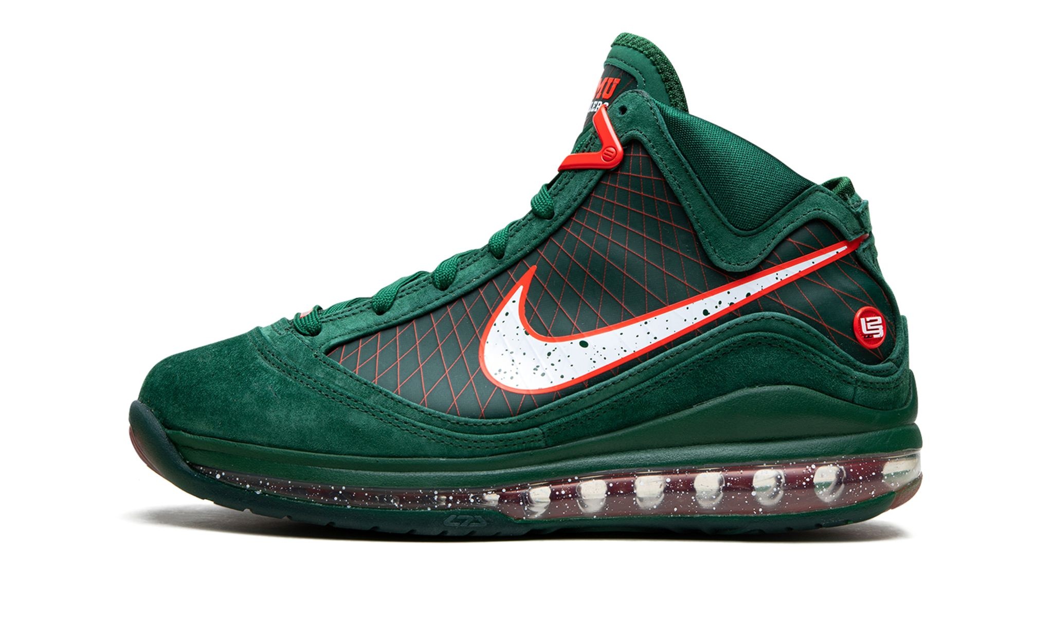 The Nike LeBron 7 “Florida A&M” is a colorway of LeBron James’s seventh signature shoe with Nike Basketball that shows love to the University of Florida A&M and its athletic programs. The “Florida A&M” design features the team uniform colors found on the Historically Black University’s sports teams. A buttery soft Gorge Green suede mudguard meshes with tonal suede overlays throughout. Orange Flywire detailing is embedded within the base. A white Swoosh with green speckle detailing and orange trim appears on the mid-panel, a mini orange “L23J” emblem covers the heel and LeBron James’s signature dots the tongue. Heel-to-toe visible Air provides comfort whether on the court or the streets. Release date: March 1, 2023