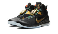 The Nike LeBron 9 “Watch the Throne 2022” is the modern re-release of the popular colorway of LeBron James’s ninth signature shoe with Nike Basketball. This colorway was originally a “Friends & Family” colorway of the performance basketball shoe created exclusively for LeBron and close family and friends. The “Watch the Throne” LeBron 9 is inspired by Jay-Z and Kanye West’s 2011 “Watch the Throne” studio album, specifically its luxurious album artwork, which was designed by fashion designer Riccardo Tisci. The shoe was given a general retail release for the first time ever in January 2022. Details include a Metallic Gold Swoosh on either side of the black Hyperfuse upper, which is stabilized with interior Flywire cables and textile wings. Both the interior lining and laces have a premium-inspired multicolor design. LeBron James’s signature appears in gold on the top of the tongue and gold-plated lace “jewels” are found on the mid-section of the tongue, partially obscuring the laces. Additional gold accenting is found in a speckle-like finish on the black foam midsole above the 180-degree Max Air cushioning unit underfoot. Release date: Release date: January 6, 2022