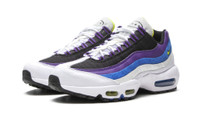 The Nike Air Max 95 “Kaomoji” is a colorful look for the retro running shoe that is inspired by Japanese anime. Refreshingly quirky in design, the “Kaomoji” features removable “Kaomoji” patches that can be attached to the tongue and middle blue panel of the upper. The Air Max 95’s wavy panels are displayed in black mesh around the eyelets and collar and purple leather and blue hook-and-loop material on the mid-panel. A glossy white leather panel appears above the white foam sole. White tumbled leather dots the toe. Branding wise, a small Volt Green Swoosh is embroidered on the lateral side and a “speech sign” emoji appears on the tongue. Visible Air bubbles in the forefoot and heel of the white midsole complete the look. Release date: January 19, 2021.