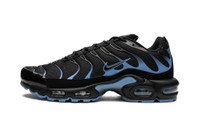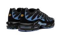 The Nike Air Max Plus “Black/University Blue” is a colorway of the retro running sneaker with a versatile yet eye-catching look. The Air Max Plus is a classic Air Max shoe that has been among the collection’s most popular models for years. On the “Black/University Blue” colorway, the shoe features a black mesh base with contrasting University Blue TPU overlays. A black jeweled Swoosh with blue contrast accenting appears on the sides. The shoe’s black foam midsole has visible Air bubbles in the forefoot and heel to provide a comfortable ride.