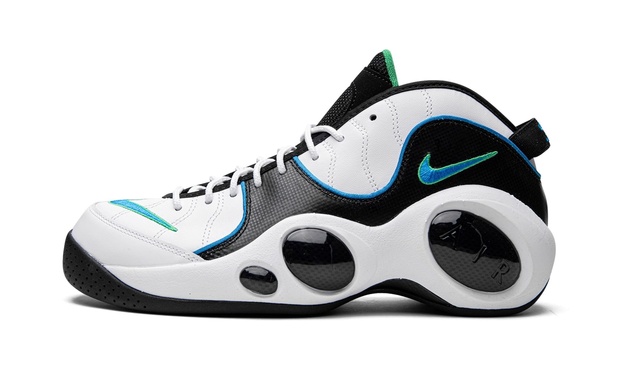 The Nike Zoom Flight ‘95 “White/Photo Blue” is the first-ever re-release of this original colorway of the celebrated basketball shoe. The Zoom Flight ‘95 received a boost in popularity in 2022 when Supreme collaborated with Nike on the shoe in three bandana-inspired colorways. The vintage hoops shoe also returned in its original black and white colorway, as well as this “White/Photo Blue” look that was once worn by Jason Kidd. The upper features a white leather construction with contrasting black mesh overlays. A large Photo Blue Swoosh is embroidered on the toe and a smaller Swoosh appears on the collar. Classic “Flight” branding is located on the black nylon pull tab on the heel. The Zoom Flight ‘95’s signature “bug eye” inserts appear in black on the white foam midsole and give the shoe a retro-yet-futuristic appearance. Release date: September 17, 2022