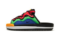 The Nike Offline 2.0 “Uno” makes sure you’re ready to take your game off the court and onto the card table. These comfy mules take bright primary colors inspired by UNO and even put the beloved card games logo on the heel. This sneaker/sandal hybrid features rounded laces and cable lacing loops with a layered upper that has a rich texture of materials including mesh. A drop-in footbed cradles your foot and the saw-toothed pattern on the sole adds durability and traction.