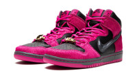 The Run the Jewels x Nike SB Dunk Low “Active Pink” is a collaboration by the popular hip-hop duo of El-P and Killer Mike on the iconic skate shoe. Run the Jewels is one of the most influential rap groups of all time, and on the “Active Pink” colorway, the pair gives the venerable SB Dunk an eye-catching look. The shoe features a black tumbled leather base with contrasting Active Pink faux pony hair overlays. A black sculpted Swoosh appears on the sides and gives the shoe an upscale look. “Run the Jewels” branding is inscribed on the inner side of the tongue. A flashy gold lace dubrae is attached to the laces. Release date: April 20, 2023