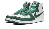 The Nike Terminator High “Noble Green” is a two-tone, white-and-green colorway of the retro basketball shoe. The Terminator High was originally debuted by Nike in 1985 and memorably worn by the Georgetown Hoyas college basketball team upon its release back in the day. In modern times, the Terminator is a vintage-inspired lifestyle shoe that is beloved for its timeless style and comfort. The “Noble Green” features a white leather base with contrasting Noble Green leather overlays on the toe cap, forefoot, eyelets, heel, and Swoosh. Classic “Nike” branding appears on the back of the shoe and “Nike” and Swoosh detailing is found on the Noble green nylon tongue tag. A white midsole and green rubber outsole complete the look. Release date: January 26, 2023