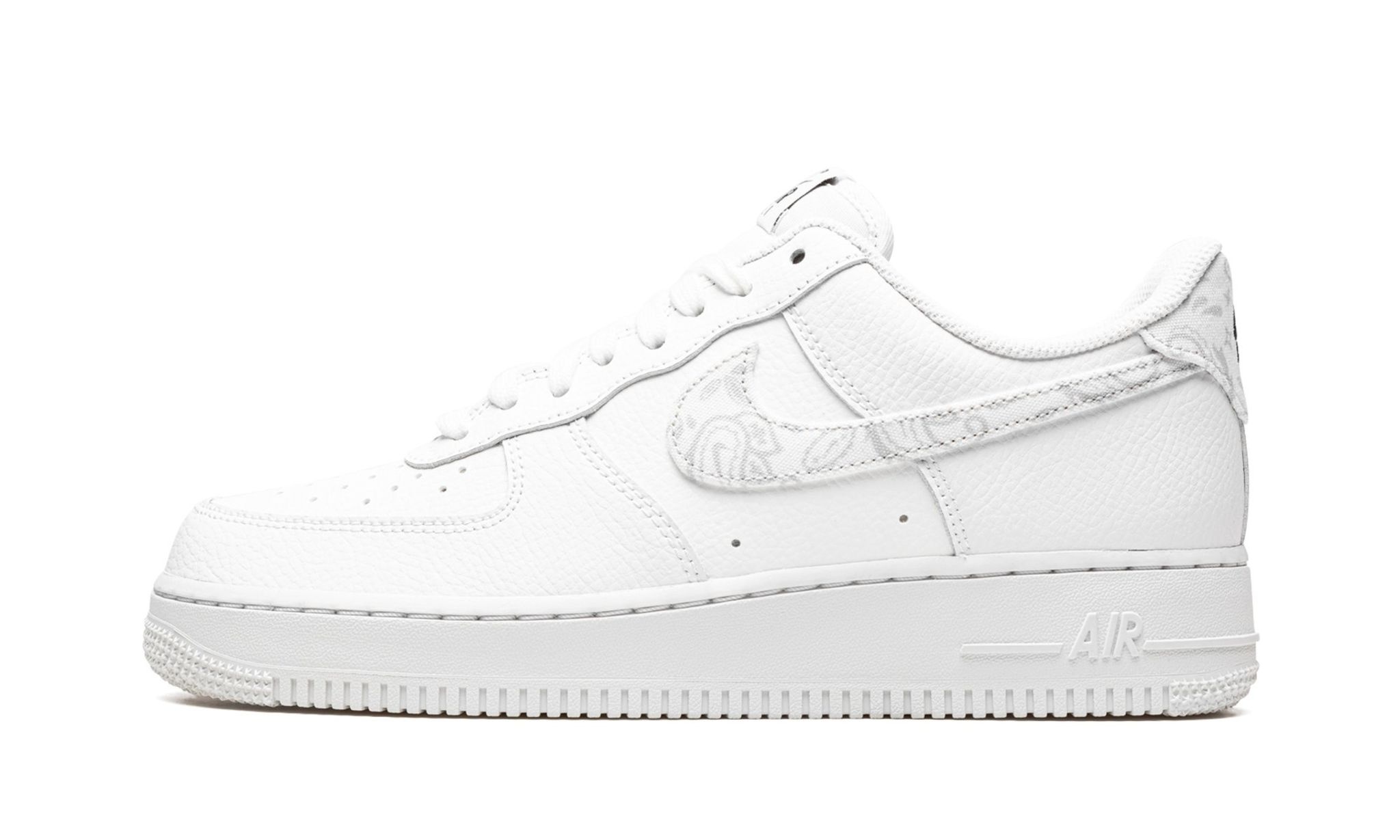 The Women’s Nike Air Force 1 Low “White Paisley” is a women’s-exclusive colorway of the retro basketball and lifestyle shoe that’s based on a classic makeup, but with a subtle twist. The shoe we’re referring to is the Air Force 1’s “White on White” colorway. Like that style, the “White Paisley” dons a monochromatic white appearance, but with a white paisley Swoosh on the sides and on the heel tab instead of the “White on White’s” tonal leather detailing. As for the rest of the design, white leather appears on the perforated toe, mid-panel, and leather overlays. Underfoot, a solid white rubber sole with tonal “Air” branding on the lateral side of the midsole completes the look.
