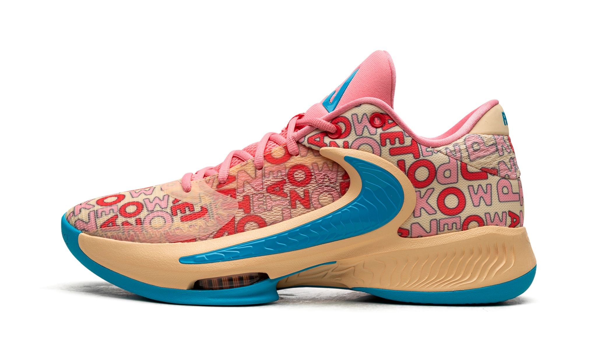 The Nike Zoom Freak 4 “Letter Bro” is a colorway of Giannis Antetokounmpo’s fourth signature shoe that uses alphabet prints inspired by the difficulty his classmates had pronouncing his last name as a child. The “Letter Bro” is another unique colorway in the basketball superstar’s Nike Zoom Freak collection. It features a cream mesh base with a tonal midsole that extends up to the middle of the shoe on the sides. An inverted blue Swoosh is found within the aforementioned part of the midsole. Pink and red letters spelling out “Antetokounmpo” are displayed across the shoe’s design. Release date: April 1, 2023