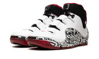 The Nike LeBron 4 "Graffiti" is the modern re-release of LeBron James’s fourth signature shoe that was originally made available in limited quantities in 2006. Rumored to be limited to just 250 pairs and released exclusively at a pop-up shop in New York City in ‘06, the Nike LeBron 4 “Graffiti” is one of the most sought after releases in the Nike LeBron line. Here, the sneaker is brought back as a retro release for the first time, and fortunately, this time around there are more pairs available. The colorway has a white leather upper with a graffiti-tagged wavy mudguard. Classic Nike LeBron branding is seen on the tongue while a white and red Swoosh is found on the collar. Release date: September 6, 2023