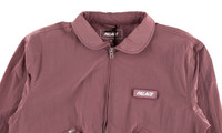 The Palace F-Light Jacket is a classic sports-inspired layer. Made in a rose-colored pink, the long sleeve nylon jacket has a roomy fit with sleeves and a body that gathers at the cuffs and hemline. Stylish details include a peter pan collar and zipper flap pockets. The Palace F-Light Jacket was showcased in the brand’s Summer 2018 collection lookbook, which was set in a summery desert landscape and modeled by Palace skaters Blondey McCoy and Lucien Clarke.