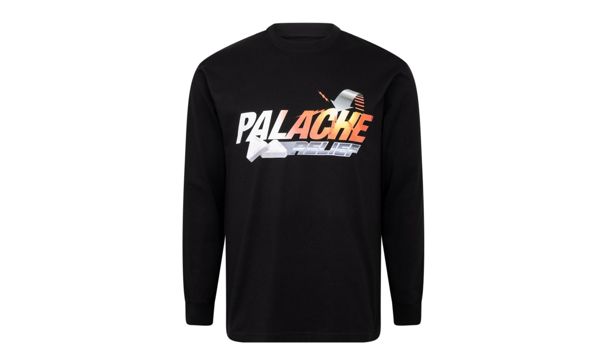 The Palace Palache Longsleeve T-Shirt is one that'll work all year round. Usually sticking to a theme that plays around with the word "Palace" or alters the Tri-Ferg logo, Palace adds a T-shirt to its lineup that does the former. The black long sleeve tee uses medicine as it's motif and features "Palache Relief" text, Tri-ferg logo pill detailing, and "Fast Acting / Maximum Strength" printed on the sleeves.
