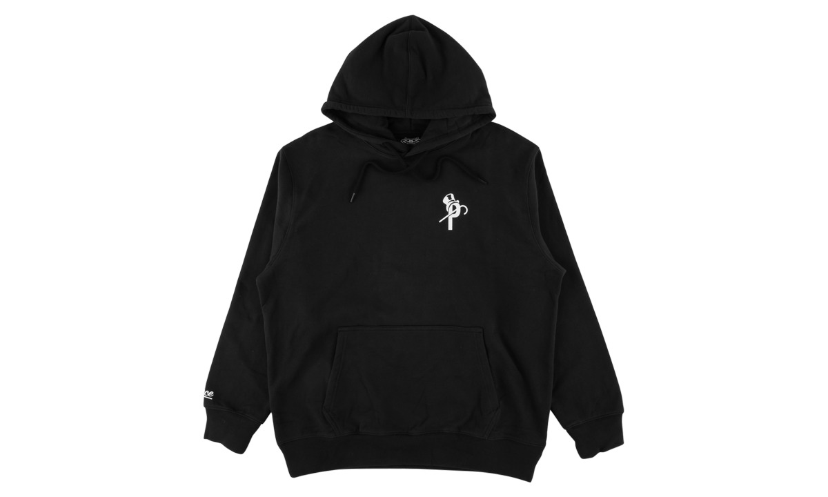The Palace Pound Hoodie isn’t just any slouchy sweatshirt. It’s made for the streets, whether you’re mashing on the board or just hanging out. Made with 100% cotton, the comfortable black hoodie comes with long sleeves, elasticated cuffs, a drawstring hood, and a kangaroo pocket. Branding appears on the Palace Pound Hood with a white top hat and cane “P” logo printed on the left chest and the skate label’s name on the right sleeve.