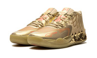 The Puma MB.01 "Golden Child" is a flashy, gold-based colorway of LaMelo Ball’s first signature shoe. From the Puma MB “Rare Reserve” collection, the Puma MB.01 “Golden Child” was originally made exclusively for Ball to wear in the NBA before it received a retail release. The shoe features a breathable mesh construction in metallic gold. Ball’s signature “1 of 1” branding is seen on the forefoot and a “wings” motif appears on the collar. Underfoot, Puma’s NITRO FOAM cushioning in the midsole ensures a responsive and comfortable ride. Release date: November 24, 2023