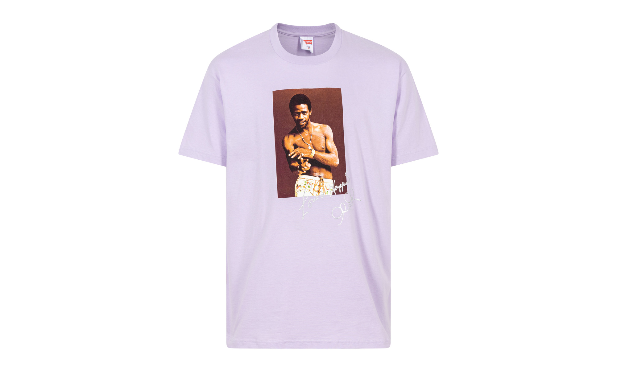 The Supreme Al Green Tee “Light Purple” is a T-shirt that honors the legendary recording artist. Released by Supreme during its Spring/Summer 2022 collection, the Al Green Tee is a pastel purple cotton short sleeve tee with a throwback graphic of Green on the chest. The phrase “Love Happens” is printed in script on the bottom of the image. The Supreme Al Green Tee in “Light Purple” is one of seven colorways of the design by the New York based streetwear brand.