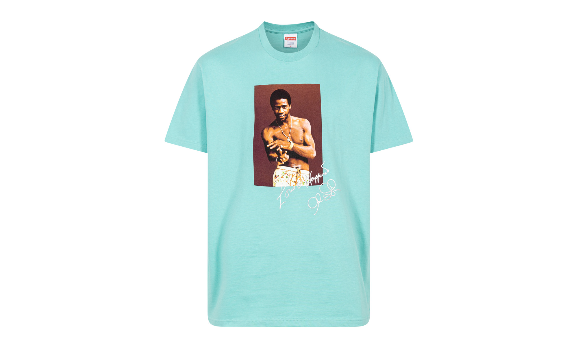 The Supreme Al Green Tee “Teal” is a T-shirt that honors the legendary recording artist. Released by Supreme during its Spring/Summer 2022 collection, the Al Green Tee is a pastel bright blue cotton short sleeve tee with a throwback graphic of Green on the chest. The phrase “Love Happens” is printed in script on the bottom of the image. The Supreme Al Green Tee in “Teal” is one of seven colorways of the design by the New York based streetwear brand.