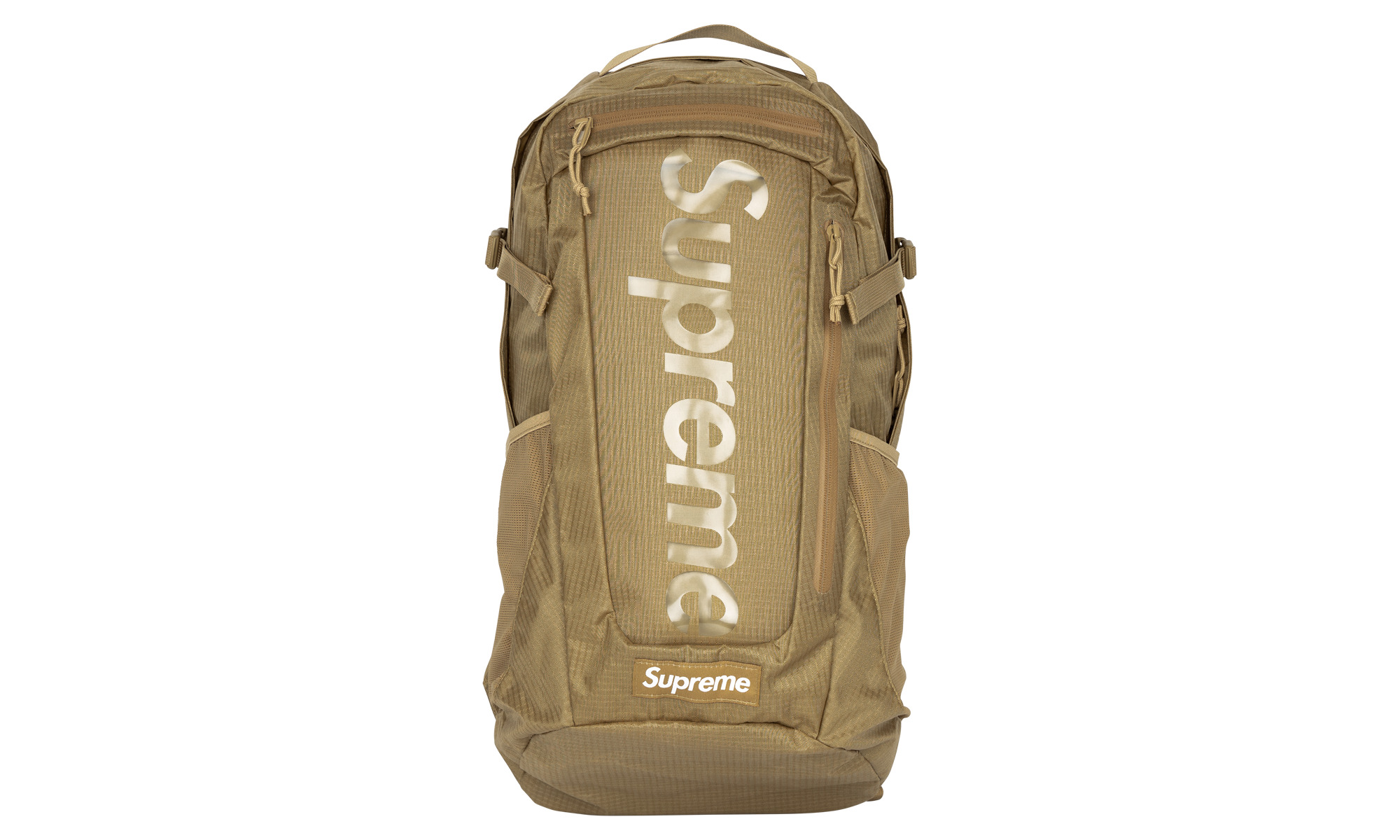 The Supreme Backpack from the brand's Spring/Summer 2021 line comes with more than enough pockets to hold all your belongings. The tan backpack is made of rugged Cordura nylon fabric with a see-through Supreme logo down the front in a glossy finish. You can spot a box logo embroidered just below it. Functionally speaking, the main compartment is accompanied by side patch pockets, multiple internal slip pockets, two padded adjustable shoulder straps, and a single rounded top handle.