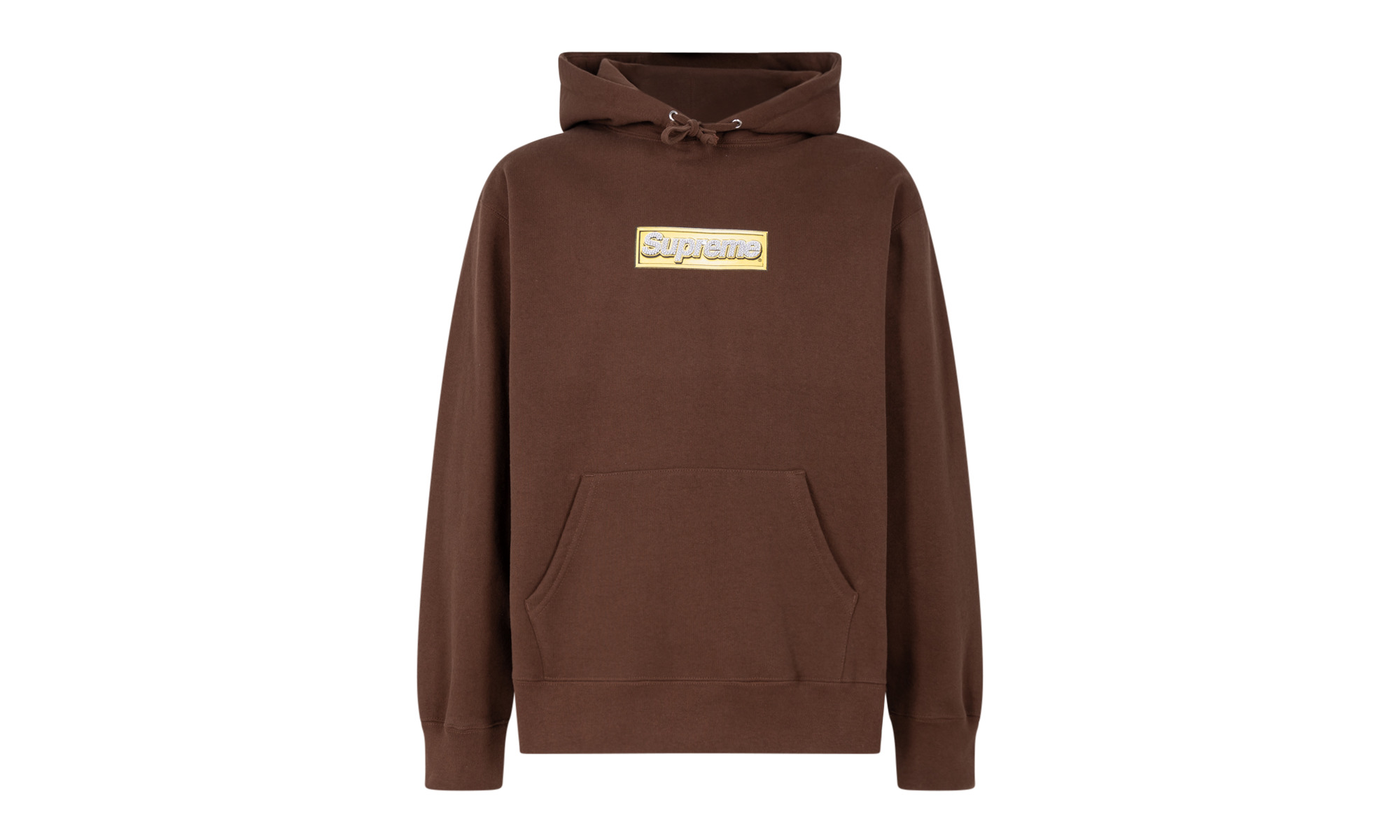 The Supreme Bling Box Logo Hoodie “Dark Brown” is an all-cotton hooded sweatshirt by the “World Famous” streetwear brand that features its iconic Box Logo in a fun design. From Supreme’s Spring/Summer 2022 collection, the Bling Box Logo Hoodie is complete with a multicolor “bling” style Box Logo on the chest. The “bling” look is derived from late ‘90s and early 2000s hip-hop culture. A front pouch pocket provides storage. Two drawstrings adjust the fit of the hood.