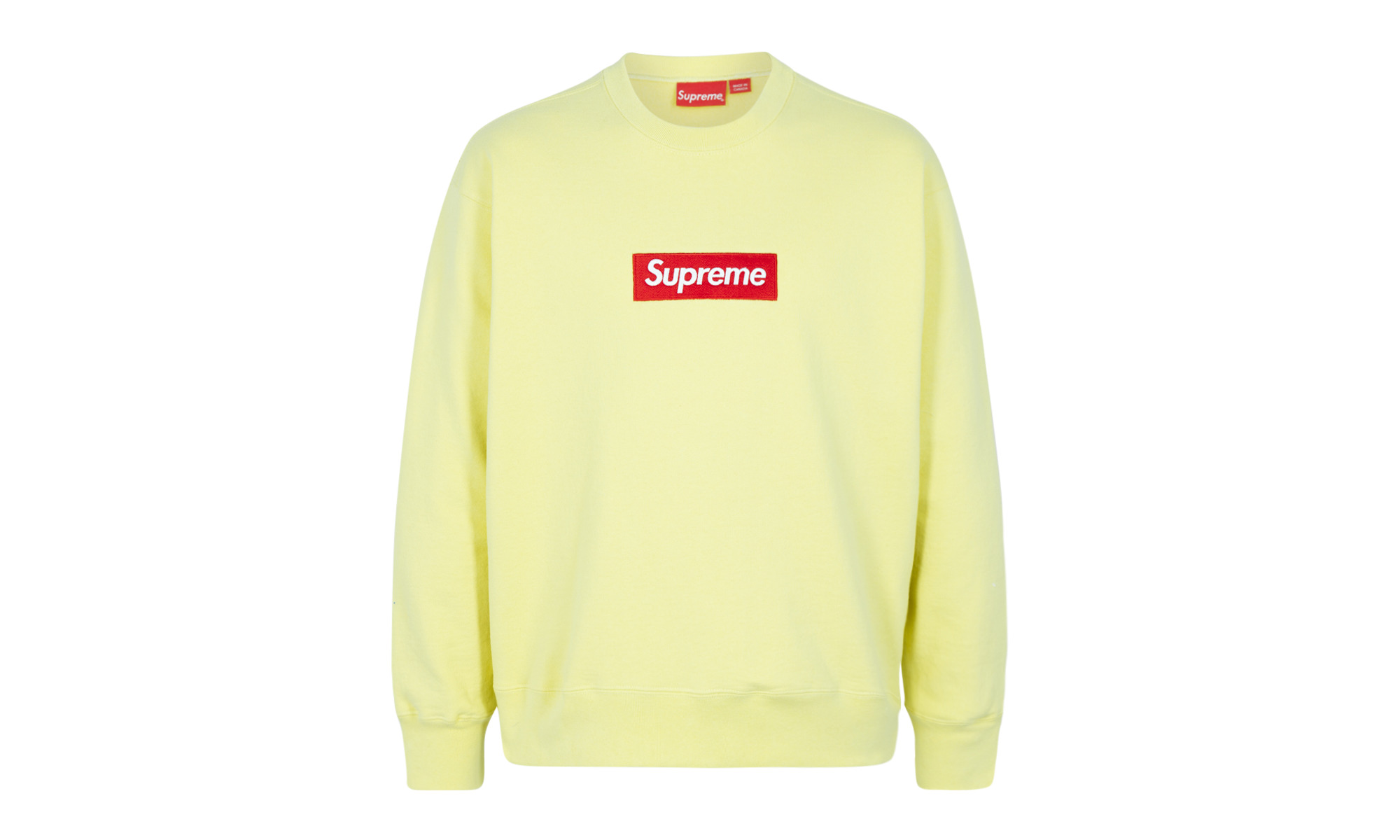 The Supreme Box Logo Crewneck “Yellow” is one of several colorways of the “World Famous” streetwear brand’s heavyweight cotton sweatshirt from its Fall/Winter 2022 line. The Supreme Box Logo Crewneck is one of the brand’s most popular items, and has been a part of Supreme’s core collection since opening in 1994. Here, the crewneck sweatshirt features a light yellow cotton construction with its classic red Box Logo embroidered on the chest.