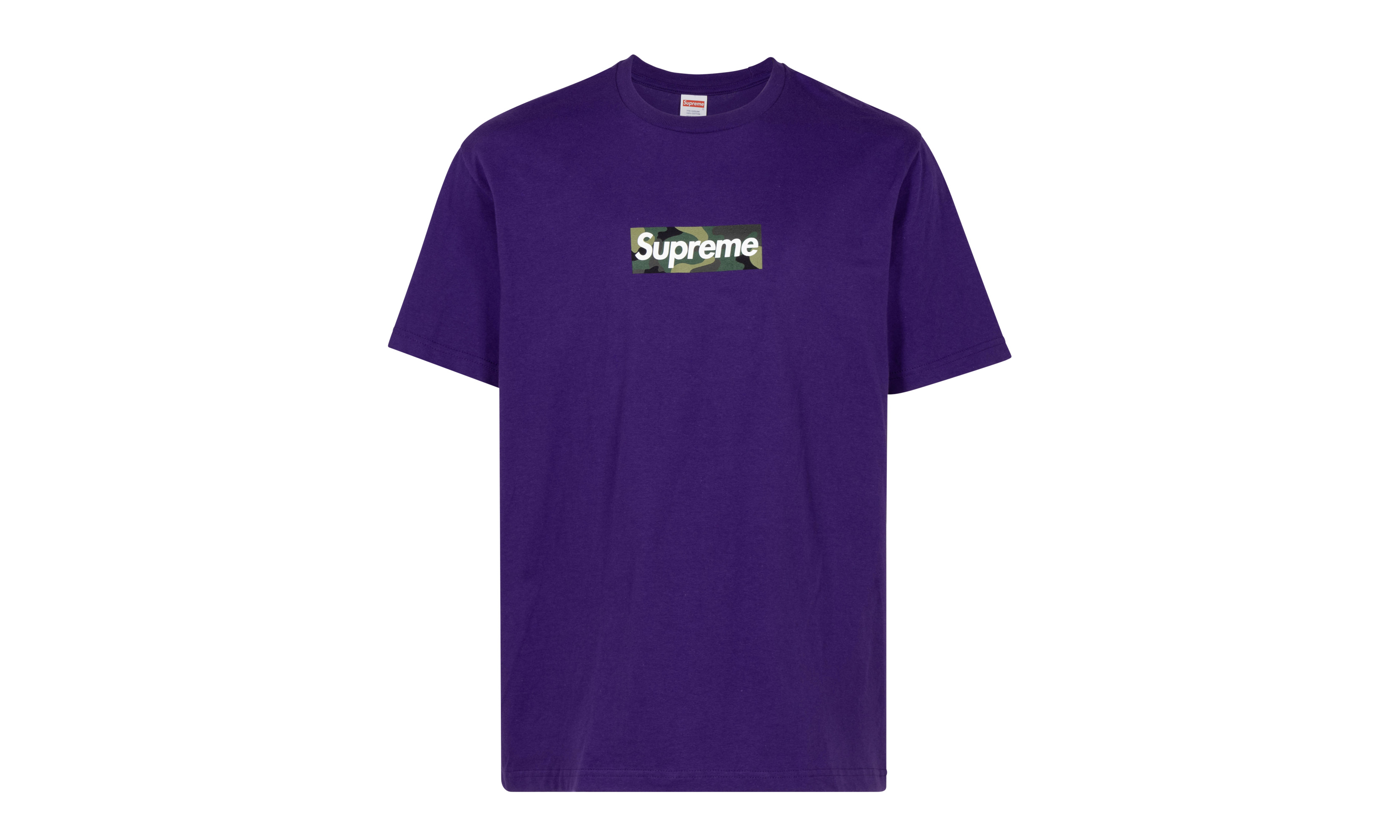 The Supreme Camo Box Logo Tee “Purple” is a heavyweight cotton tee by the popular streetwear brand featuring its signature logo. The Box Logo Tee is one of the brand’s earliest pieces of clothing, having appeared in Supreme’s first-ever collection back in 1994. Here, the purple T-shirt features a modified camouflage Box Logo printed on the chest.