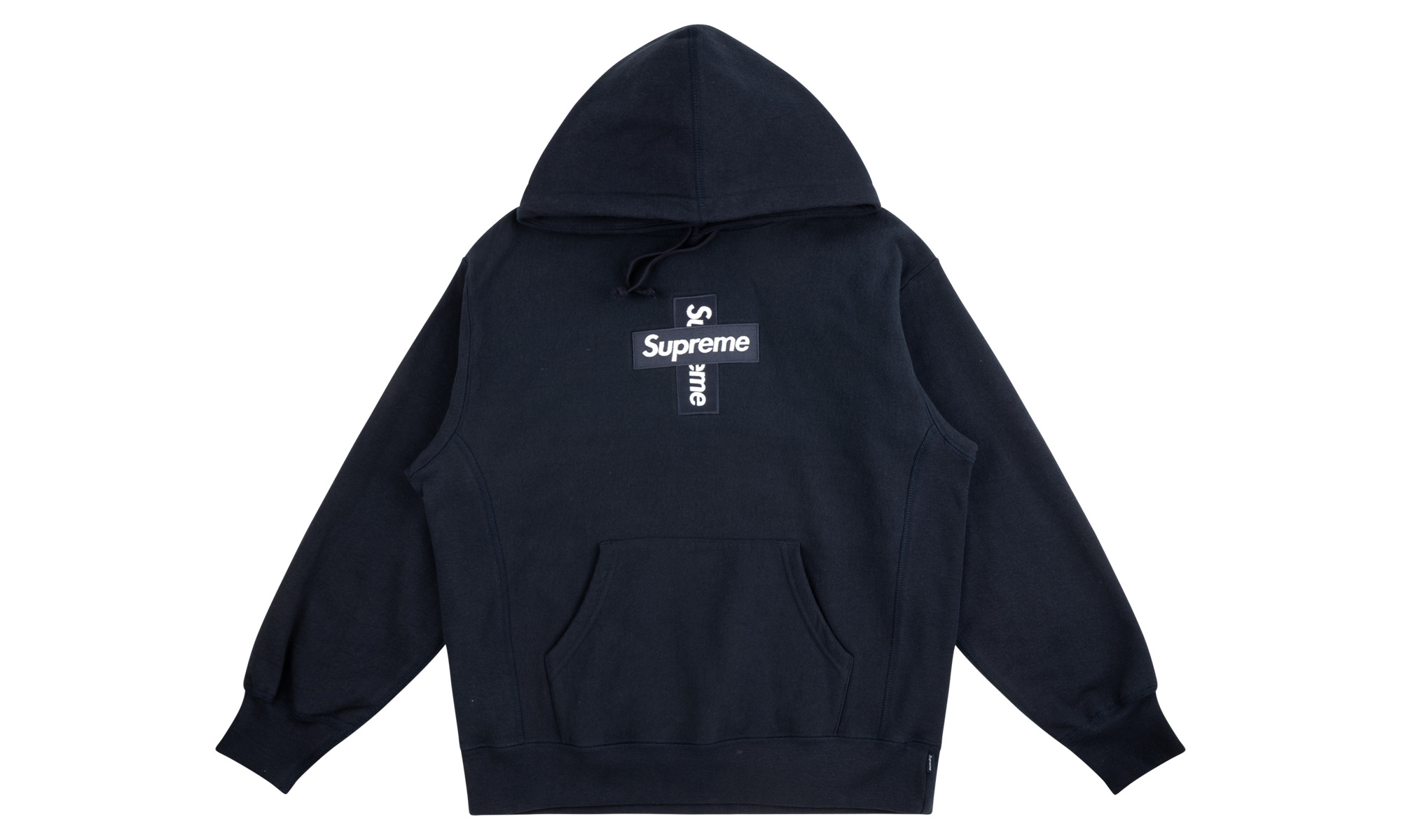 The Supreme Cross Box Logo Hoodie gives you all the elements of a classic Supreme hooded sweatshirt but updates the logo, giving Supreme fans a coveted closet piece that's new and different. Launched as part of Supreme's Fall/Winter 2020 collection, the slightly oversized sweatshirt is made of cotton crossgrain fleece in navy blue with two embroidered Supreme box logos that overlap each other.