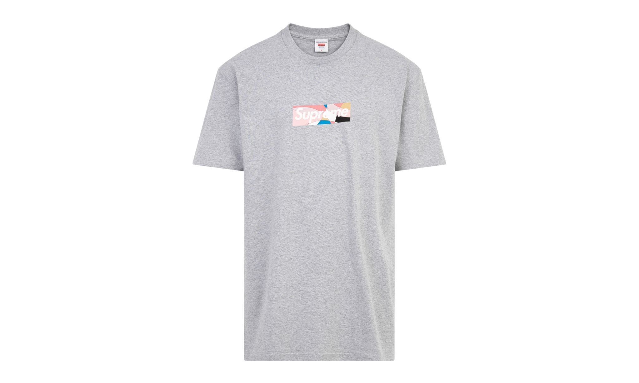 The Emilio Pucci x Supreme Box Logo Tee was released in Spring/Summer 2021, a part of Supreme's major collaboration series with high-end, globally known fashion designers. The streetwear-luxury fashion collaboration leans into the Italian fashion label's famous prints as one of Pucci's Tulipani patterns serves as the background of the Supreme box logo. This short sleeve, 100% cotton tee in heather grey sees the collaborative logo in eye-pleasing, multicolored hues.