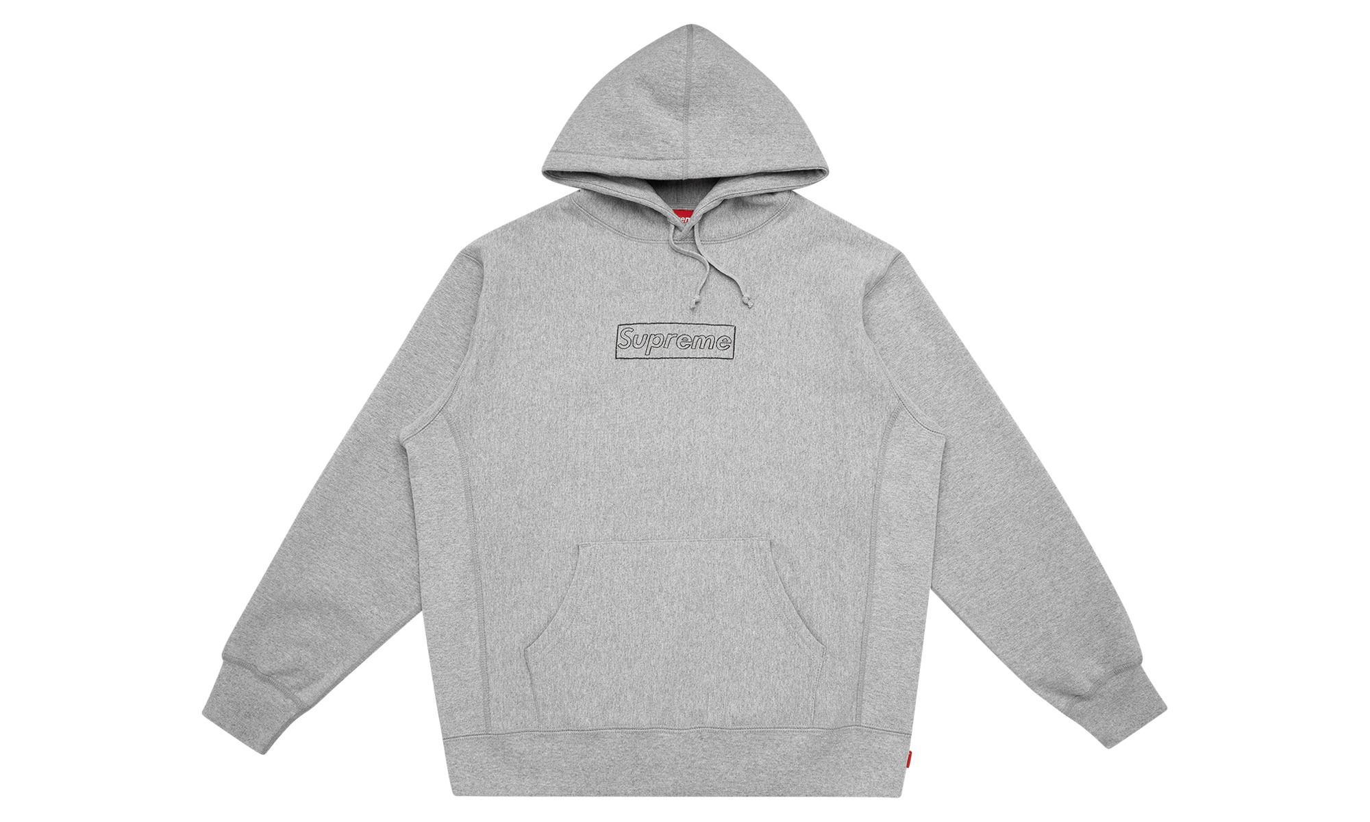 The KAWS x Supreme Chalk Logo Hoodie “Grey” is a heavyweight hooded sweatshirt that features the original artwork of legendary graffiti artist KAWS. Hardly the first collaboration between the Jersey City, New Jersey native and Supreme, the Chalk Logo Hoodie is nonetheless a standout piece from Supreme’s Spring/Summer 2021 collection. Supreme’s iconic Box Logo is reworked by KAWS in a chalk-inspired, handwritten font on the chest.
