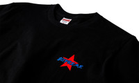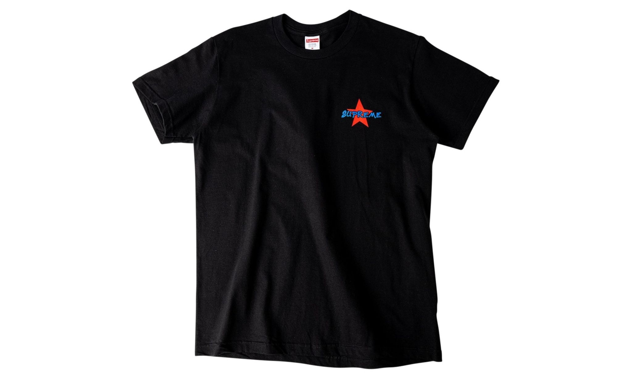 The Supreme Money Power Respect T-shirt in black is a Fall/Winter 2019 release that features vibrant graphics and branding. The 100% cotton tee is equipped with a black star motif on the left chest and blue Supreme branding overlapping the red star design. The slogan “Money, Power, Respect” is printed onto the back of the shirt with two hands toasting mugs of beer in celebration.