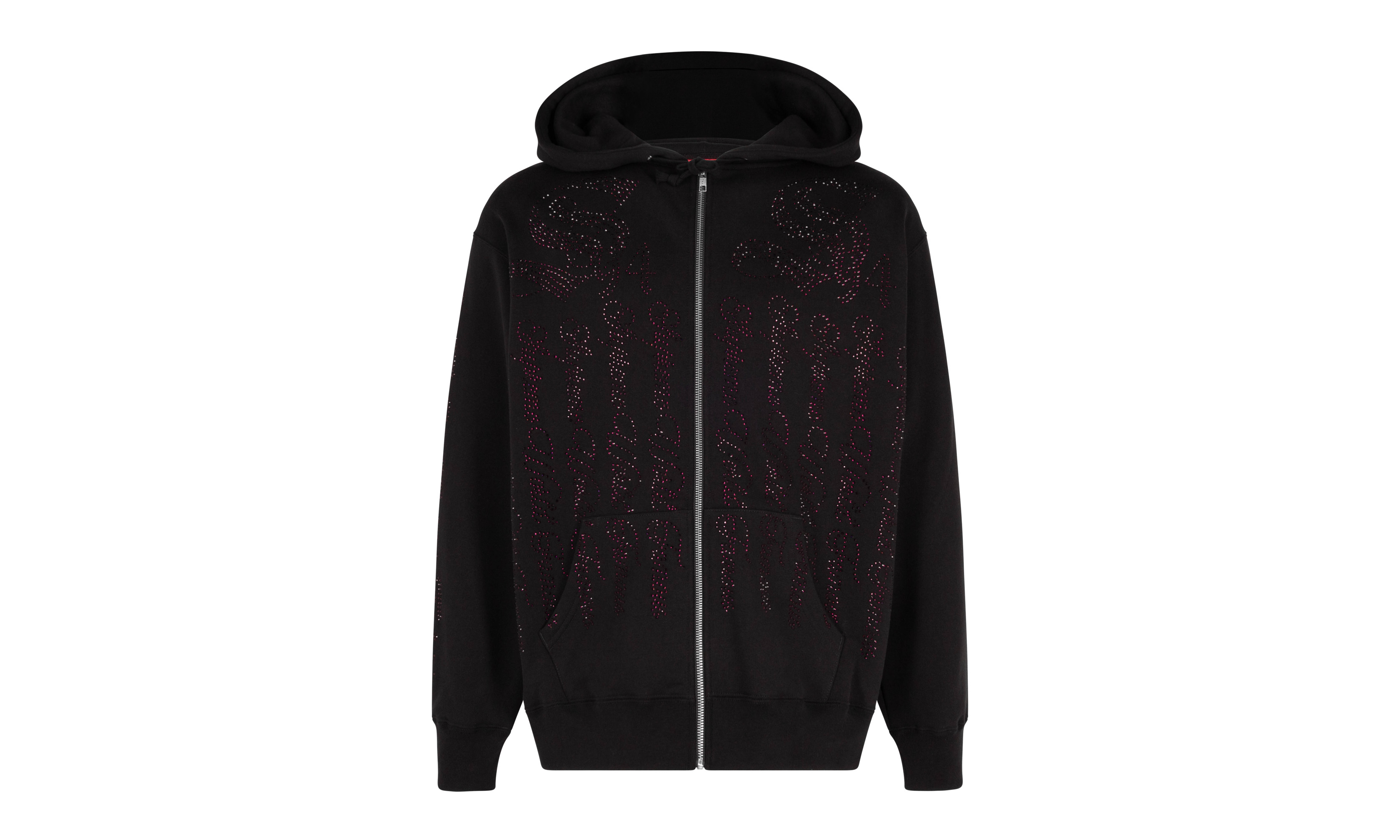 Rhinestone Zip Up Hooded Sweatshirt SU357