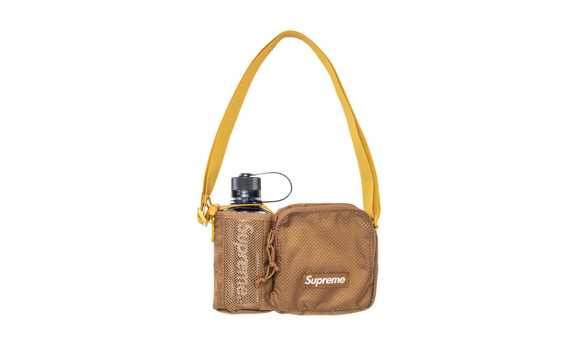 The Supreme Side Bag “Brown” is a popular utilitarian accessory from the “World Famous” streetwear brand’s Spring/Summer 2022 collection bundled with a narrow-mouth Nalgene bottle. The perfect companion for city adventurers, hiking, and other outdoors activities, the Supreme Side Bag carries small items inside of a zip compartment, and holds a narrow-mouth, Supreme-branded 16oz Nalgene bottle inside of a mesh carrier. A classic Supreme Box Logo appears on the front of the bag. An adjustable strap in a contrasting yellow hue allows for a comfortable fit. The bag is constructed from durable, waterproof Cordura recycled ripstop nylon.