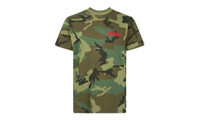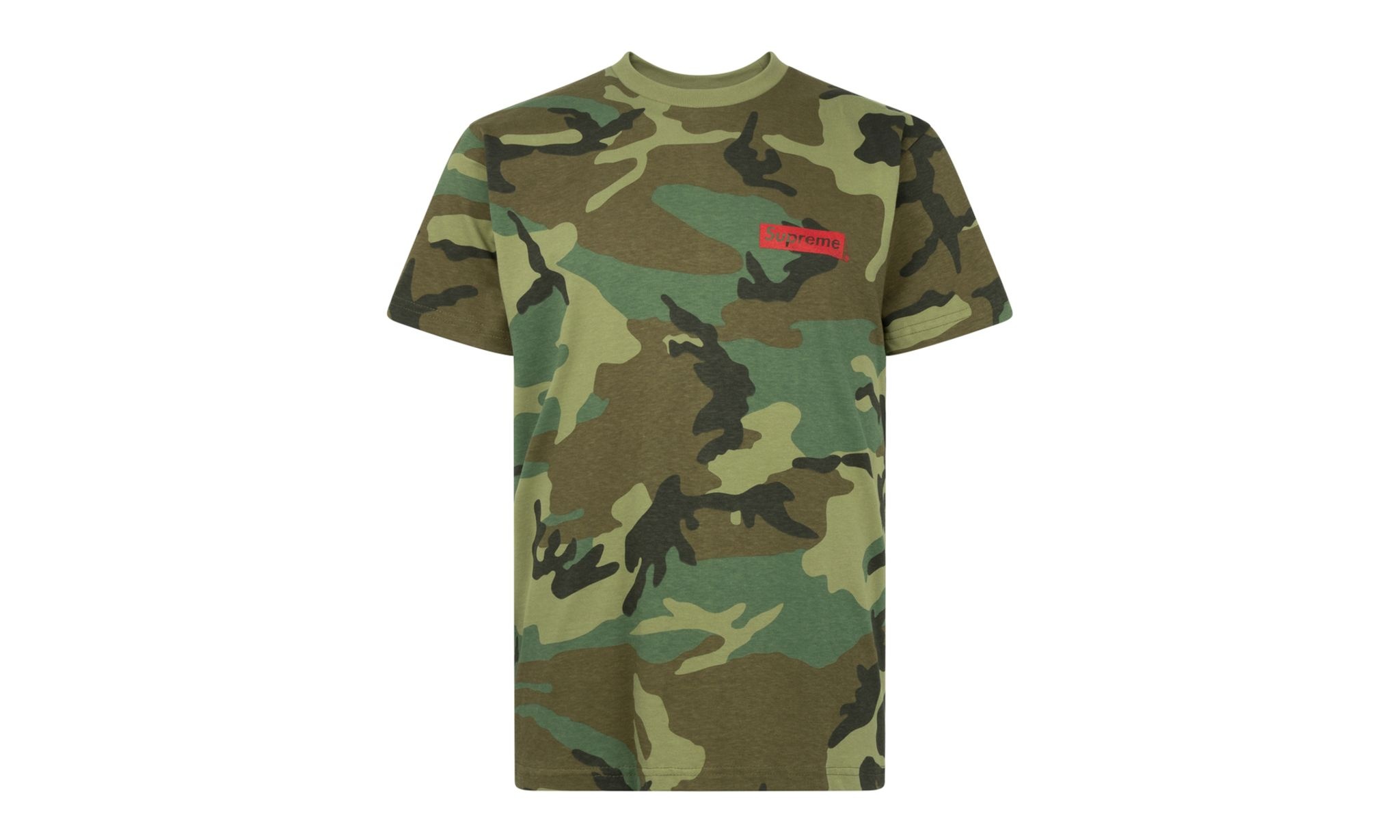 The Supreme Spiral T-Shirt "Camo" was released on February 18, 2021 and features a statement graphic by artist Weirdo Dave. A Supreme box logo, printed in a way that looks like a photocopy, is featured on the front of this camouflage crew neck tee. On the back, Weirdo Dave uses his signature approach, which sees red cut-out words photocopied into one big spiral graphic. The collage uses words like "Love You To Death," "Aggression," and "It's a New World" in a spiral formation surrounding another Supreme box logo in red.