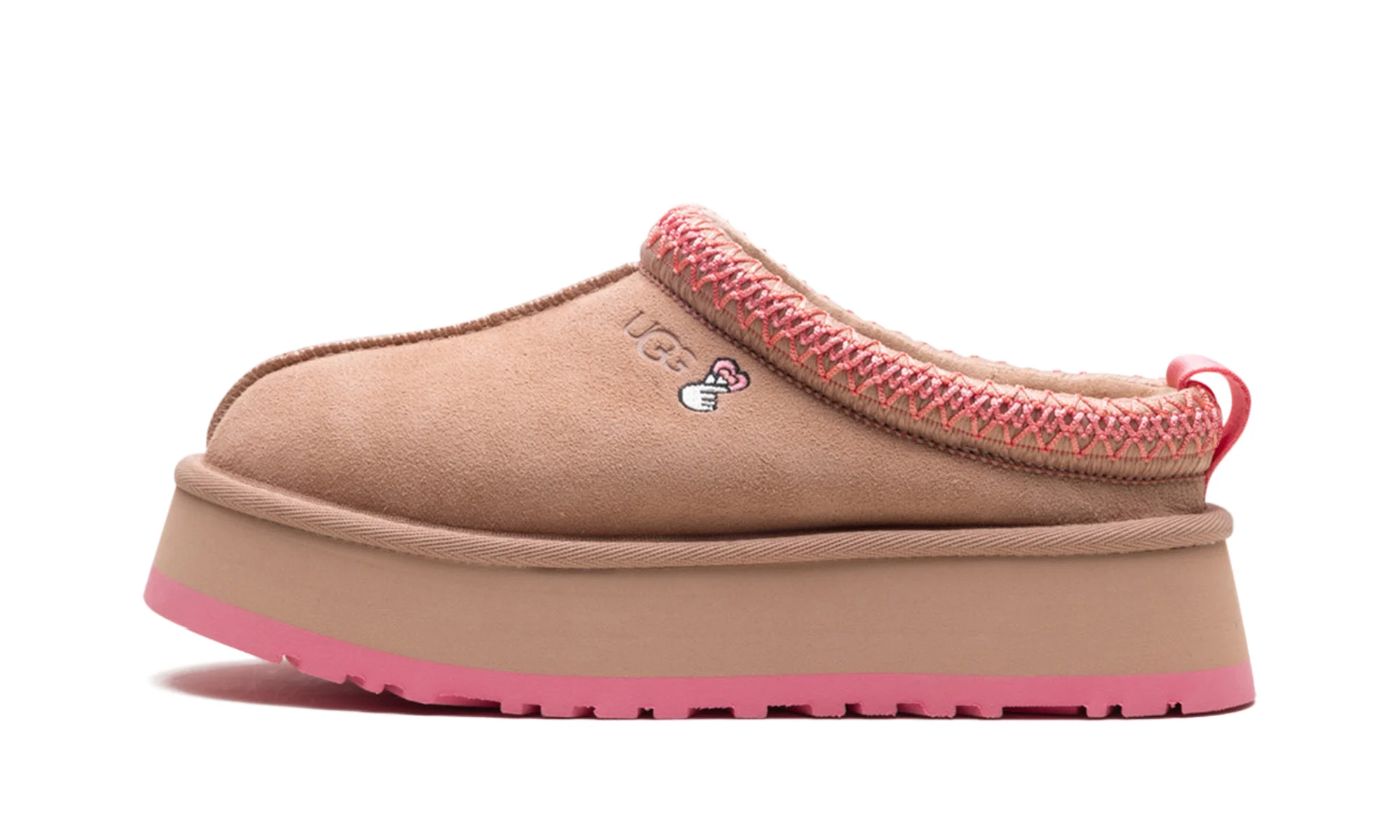 Step into stylish height with the UGG Tazz Love 25 Slipper Wmns "Arroyo / Tropical Pink". This limited-edition women's slipper features an exaggerated platform sole and a plush sheepskin lining for ultimate warmth. The Tropical Pink upper and unique love-themed embroidery make it perfect for running errands or lounging in luxury.