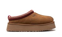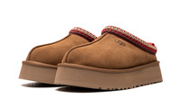 Elevate your cozy style with the popular UGG Tazz WMNS "Chestnut" platform slipper. This women's favorite features a rich suede upper and a warm inner lining of plush sheepskin and upcycled wool for supreme comfort. The fashionable platform sole gives you a subtle boost in height, while the signature embroidered Tasman braid adds a chic detail. Its durable EVA foam outsole is ready for both indoor lounging and stylish outdoor errands.