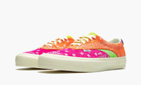 The Rhude x Vans Acer NI SP “Multicolor” is a September 2020 collaboration between the California based streetwear label and Vans on a brand new silhouette. The Acer NI silhouette features the same sleek profile of the timeless Vans Era. As for the styling of the Rhude’s version of the shoe, the upper features white embroidery detailing stitched onto a patchwork-like pattern of neon panels. Hues of orange, lime green, blue, fuchsia, and purple comprise the design. The cream shoelaces and vulcanized midsole give the shoe an appealing vintage look. Release date: September 5, 2020.