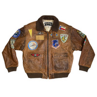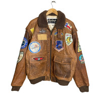 TOP GUN G-1 Vintage Bomber Aviator Flight Jacket w/Patches
