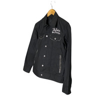 PLEASE ASK ANY QUESTION BEFORE BUYING!!! THIS IS USED CLOTHING!!! PLEASE DONT EXPECTED IT TO BE LIKE NEW OR IN PRISTINE CONDITION crazy devil embroidery trucker jacket Tag : crazy devil saiz : S(on tag) Mesasures About ( Approximately) -arm to arm: 19”inch -lenght : 24.5”inch Condition : used good condition 8/10 Colour : black ** See more detail picture** PLEASE READ THE DESCRIPTION AND POLICY BEFORE BUYING ACCEPT PAYMENT: PAYPAL ONLY ALL ITEM WILL BE SHIPPED WITHIN 3-5 BUSINESS DAY AFTER RECEIVING CLEARED PAYMENT WE ARE USING DHL EXPRESS WITH TRACKING NUMBER. IT WILL TAKE 10-14 WORKING DAYS TO DELIVERED.PLEASE LEAVE YOUR PHONE NUMBER DURING PURCHASE. PHONE NUMBER REQUIRED FOR DHL EXPRESS (VERY IMPORTANT) C43