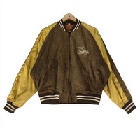 PLEASE ASK ANY QUESTION BEFORE BUYING!!! THIS IS USED CLOTHING!!! PLEASE DONT EXPECTED IT TO BE LIKE NEW OR IN PRISTINE CONDITION Vintage Hakka Homme leather bomber jacket satin sleeve Tag : Faded saiz : M (on tag) Mesasures About ( Approxima ) -arm pit : 27”inch -lenght : 26”inch Condition : good 8/10 Colour : brown gold ** See more detail picture** PLEASE READ THE DESCRIPTION AND POLICY BEFORE BUYING ACCEPT PAYMENT: PAYPAL ONLY ALL ITEM WILL BE SHIPPED WITHIN 3-5 BUSINESS DAY AFTER RECEIVING CLEARED PAYMENT WE ARE USING DHL EXPRESS AND DHL ECOMMERCE WITH TRACKING NUMBER. IT WILL TAKE 10-14 WORKING DAYS TO DELIVERED.PLEASE LEAVE YOUR PHONE NUMBER DURING PURCHASE. PHONE NUMBER REQUIRED FOR DHL EXPRESS (VERY IMPORTANT) CODE P24