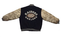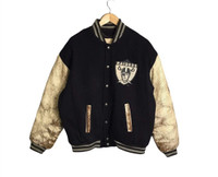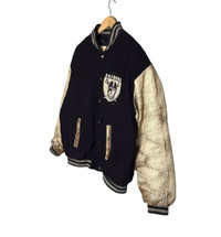 PLEASE ASK ANY QUESTION BEFORE BUYING!!! THIS IS USED CLOTHING!!! PLEASE DONT EXPECTED IT TO BE LIKE NEW OR IN PRISTINE CONDITION Vintage Raiders big logo varsity Jacket Tag : Raiders saiz : M Mesasures About ( Approxima ) -arm pit: 25”inch -lenght : 28”inch Condition : good 7/10 Colour : Black/Cream ** See more detail picture** **distressed at sleeve lenght leather only” **in body wool its good condition no difect** PLEASE READ THE DESCRIPTION AND POLICY BEFORE BUYING ACCEPT PAYMENT: PAYPAL ONLY ALL ITEM WILL BE SHIPPED WITHIN 3-5 BUSINESS DAY AFTER RECEIVING CLEARED PAYMENT WE ARE USING DHL EXPRESS AND DHL ECOMMERCE WITH TRACKING NUMBER. IT WILL TAKE 10-14 WORKING DAYS TO DELIVERED.PLEASE LEAVE YOUR PHONE NUMBER DURING PURCHASE. PHONE NUMBER REQUIRED FOR DHL EXPRESS (VERY IMPORTANT) P18