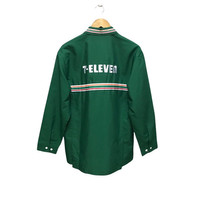 PLEASE ASK ANY QUESTION BEFORE BUYING!!! THIS IS USED CLOTHING!!! PLEASE DONT EXPECTED IT TO BE LIKE NEW OR IN PRISTINE CONDITION Vintage 7 Eleven zipper up shirt Tag : 7Eleven saiz : LL(on tag) Mesasures About ( Approximately) -arm to arm: 23”inch -lenght : 30”inch Condition : used good condition 8/10 Colour : Green ** See more detail picture** ** no stain no hold and perfect** PLEASE READ THE DESCRIPTION AND POLICY BEFORE BUYING ACCEPT PAYMENT: PAYPAL ONLY ALL ITEM WILL BE SHIPPED WITHIN 3-5 BUSINESS DAY AFTER RECEIVING CLEARED PAYMENT WE ARE USING DHL EXPRESS WITH TRACKING NUMBER. IT WILL TAKE 10-14 WORKING DAYS TO DELIVERED.PLEASE LEAVE YOUR PHONE NUMBER DURING PURCHASE. PHONE NUMBER REQUIRED FOR DHL EXPRESS (VERY IMPORTANT) C38