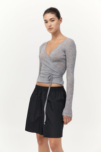 Baby Wool Wrap Top - Grey Marle