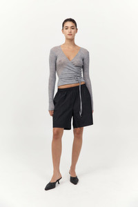 Crafted from 100% merino wool, the Baby Wool Wrap Top wrap top features a flattering V-neckline, long sleeves, and a wrap front with tie fastening. With its fine ribbed texture and subtly sheer finish, the Baby Wool Wrap Top is ideal for layering or wearing on its own. DETAILS Materials - 100% Merino Wool Garment Details - V-neckline, wrap front with tie fastening, longsleeve, ribbed, slightly sheer Manufacturing - Manufacturer has signed the St. Agni Code of Conduct - Responsibly made in Australia CARE - Wash and dry garment turned inside out - Cold hand wash separately in wool detergent - Do not soak - Do not bleach - Do not twist or wring - Do not tumble dry - Dry flat in shade - Ease into shape - Cool iron on reverse side - Do not hang - Store flat - Dry clean (P)